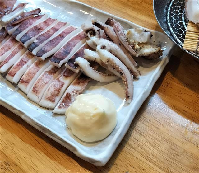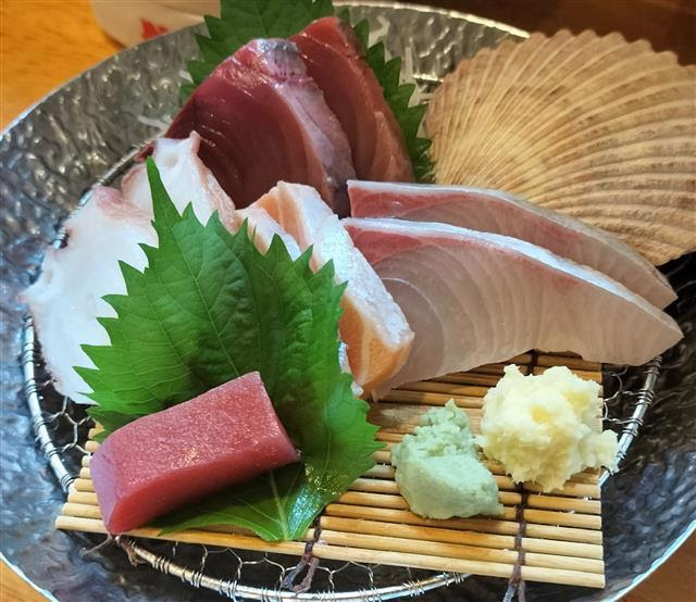 「刺身盛り合わせ」「イカ焼き」を注文!