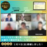 プレスリリースからメディア掲載、登壇と信頼の連鎖について触れています。後半は、PRセミナー第2弾の御案内。アーカイブを有償でお届けできるようにしようと思いつつ、そのまま^_^;私も振り返りたい!