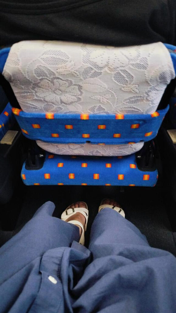 すでに50mほどの行列で7時15分の始発には乗れず、7時30分発の補助席に着席。8:05に西ゲート到着しました。