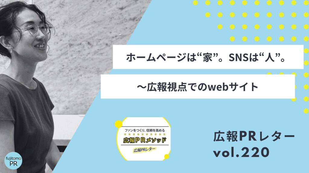 ホームページは“家”。SNSは“人”。~広報視点でのwebサイト/広報PRレターvol.220