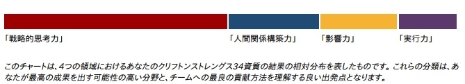 資質の全体像は、「戦略的思考力」の資質が相対的に強いという結果がでた。「情報を取り入れ、分析し、より適切な判断」ができるのだという。