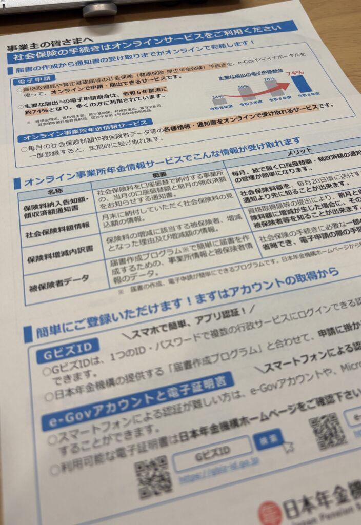 チラシには「GビジID」と「e-Gov」がおすすめされている。