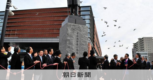 ▼約1トンの銅像お披露目(朝日新聞)