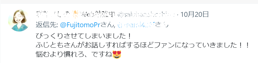(その2)投稿を知った私の「お世話さまでした!びっくり( ≧∀≦)」に対する返信