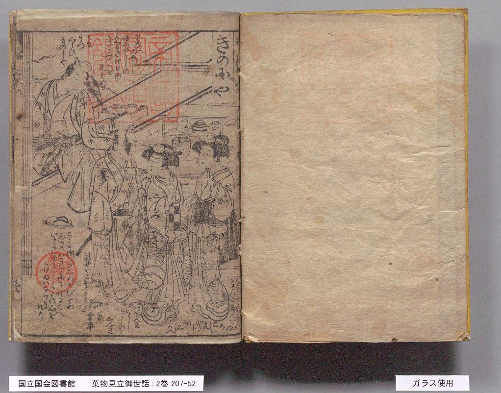安永9(1780)年刊行の『菓物見立御世話咄』(北尾政演作画)という作品を例に挙げると、